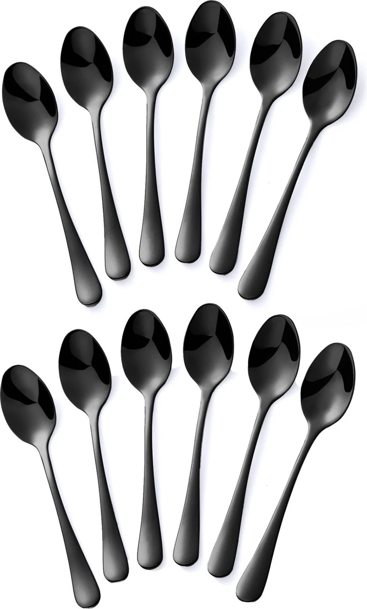 De lepels zijn vervaardigd uit hoogwaardig food grade RVS. Dit zorgt ervoor dat ze jaren meegaan en ze geen metalen bijsmaak met zich meebrengen. De set bestaat uit 12 zwartkleurige lepels die na gebruik eenvoudig gereingd kunnen worden in je vaatwasmachine.