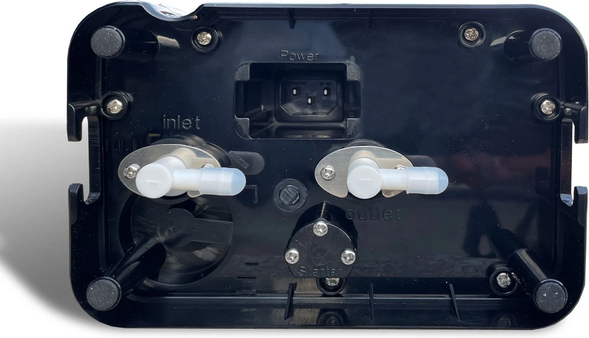 De gewenste waterkwaliteit wordt via de flexibele tuit naar buiten geleid.
