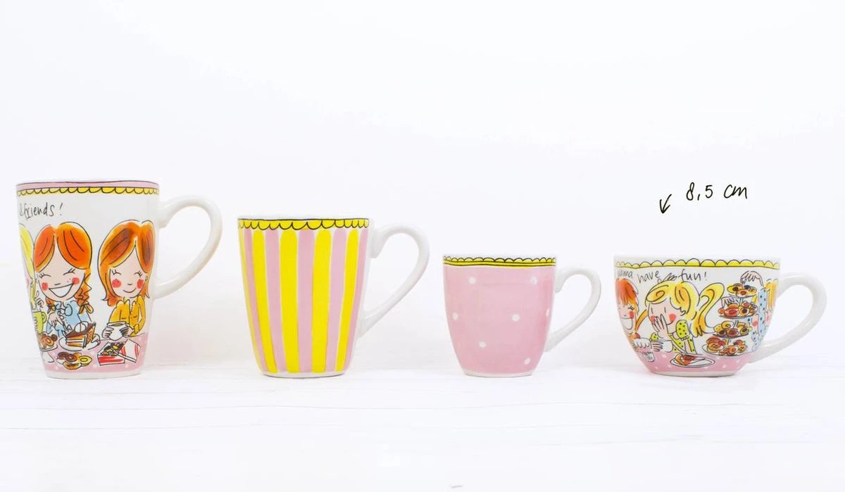 Deze nieuwe vrolijke, rijk geillustreerde grote kop uit de Even Bijkletsen serie maakt jouw tafel nog gezelliger! De opvallende en kleurrijke illustraties kenmerken de ‘Even bijkletsen’ lijn van de twee vriendinnen uit Amsterdam: een servieslijn met een knipoog. De diameter van de kop is 11 cm en de inhoud ca. 350 ml.