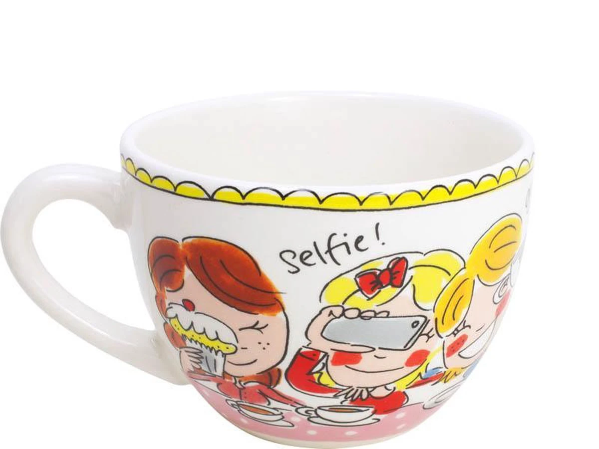 Een heerlijk brede kop waarbij je extra kunt genieten van jouw thee. De kop behoort tot de collectie Even Bijkletsen van Blond Amsterdam. Op de kop staan vriendinnen afgebeeld die veel plezier hebben tijdens een high tea.