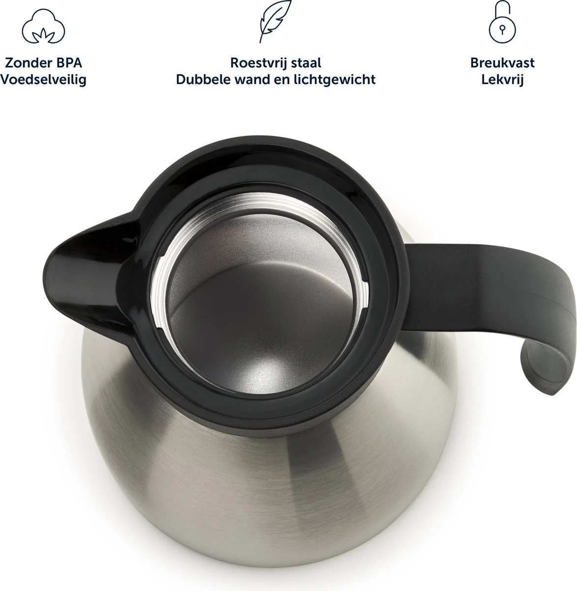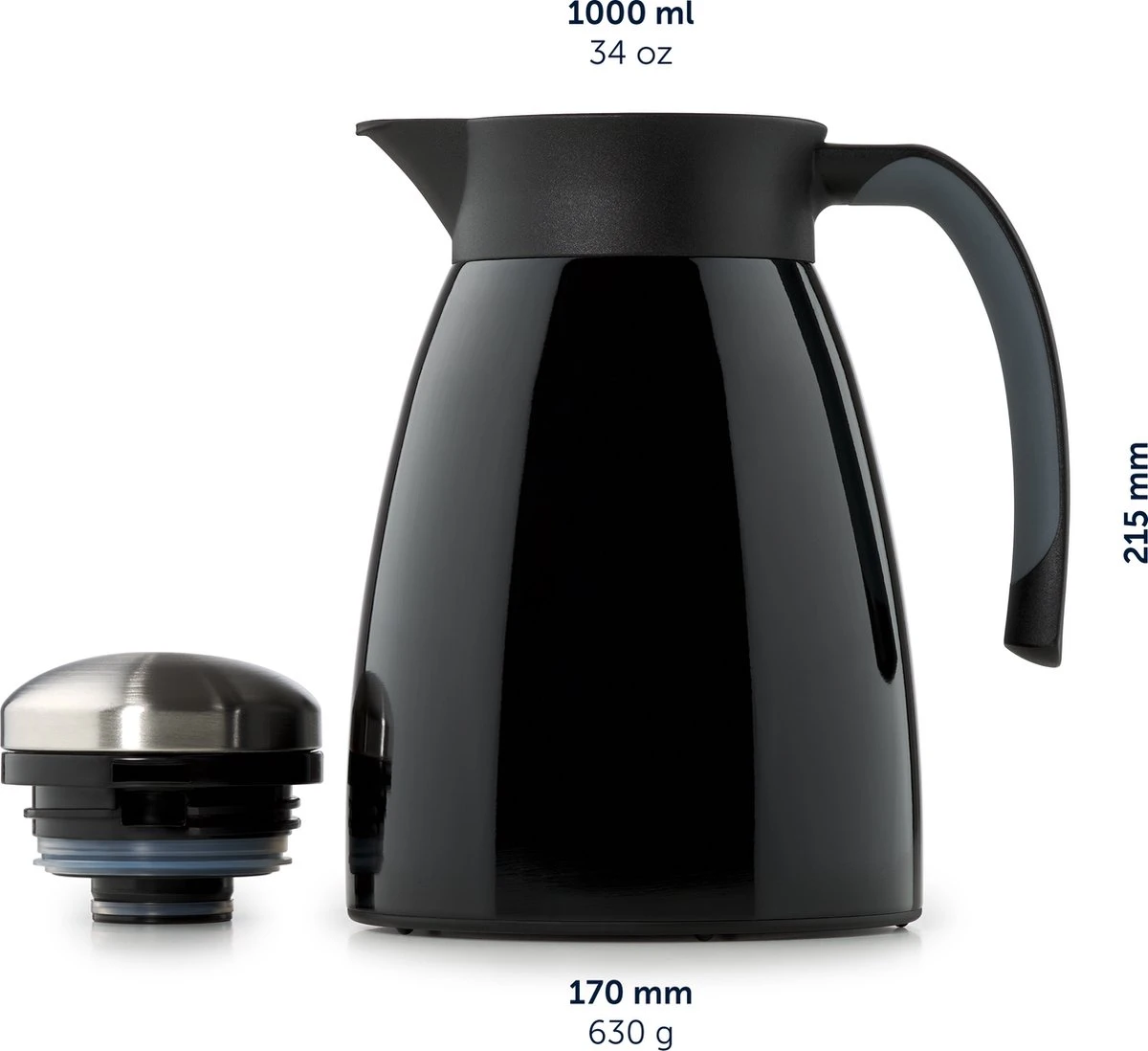 De thermoskan van 1 l houdt warme dranken zoals thee of koffie tot 10 uur warm met behoud van de frisse smaak. Desgewenst kan de kan echter ook eenvoudig worden gevuld met koude dranken. De koffiepot is gemakkelijk schoon te maken, lekvrij en onbreekbaar. De theepot is verkrijgbaar in 4 verschillende kleuren.