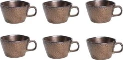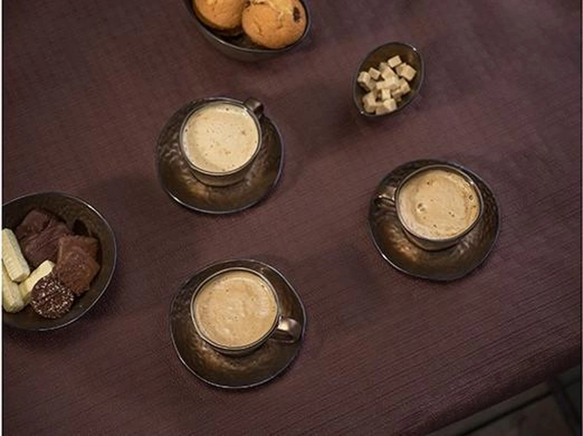 Het servies is bruin en bestaat uit 6 onderdelen. Deze prachtige koffiekopjes set is geschikt voor een koffietafel met 6 personen. De set bevat o.a. mooi afgewerkte koffiekopjes die uw gedekte zullen laten sprankelen!