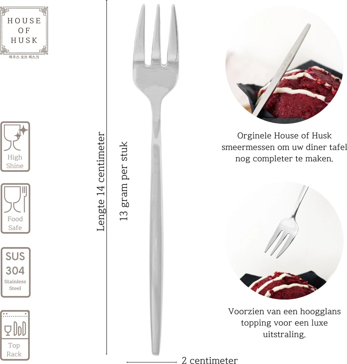 House Of Husk® Zilveren Gebaksvorkjes – Dessertvorken – Taartvorkjes – Cocktailvorken – Klein Vorkjes – 12 Stuks – RVS – 14cm