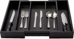 Super handige uitschuifbare bestekbak van bamboe met 3 tot 5 vakken. Ideaal om je keukenlade te organiseren!