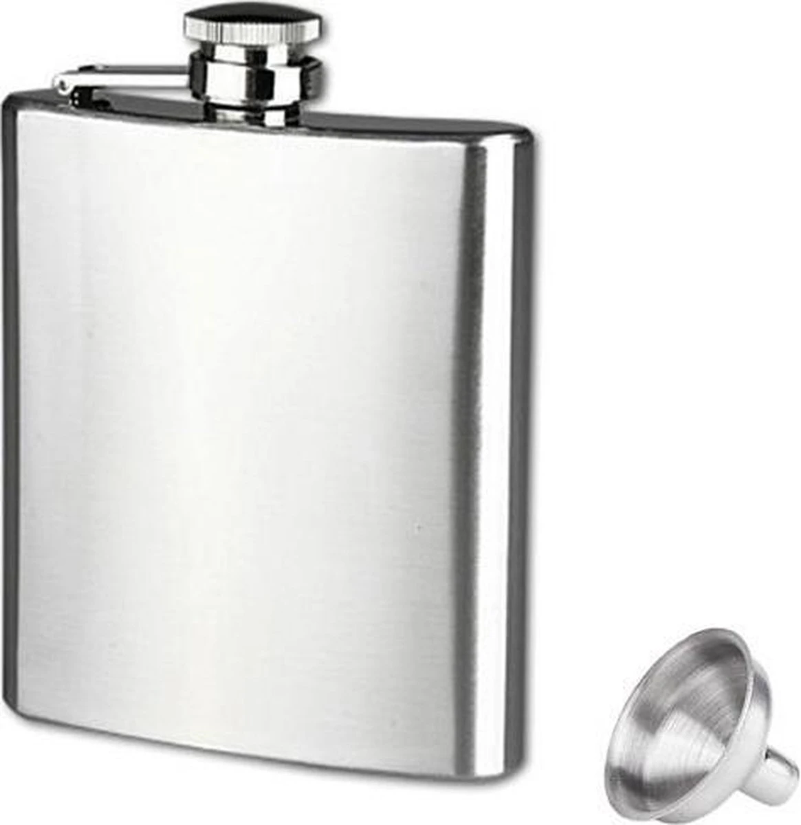 Wie kent hem niet! De heupfles, ook wel platvink genoemd in de volksmond. Het is een handige vormgegeven drinkfles die daardoor perfect in je borstzak of binnenzak past. Het item is beschikbaar in 7 verschillende afmetingen en elk heeft daardoor een andere inhoud. De afmetingen en inhoud per product kunt u vinden op de laatste afbeelding. Het item is vaatwasser bestendig!
