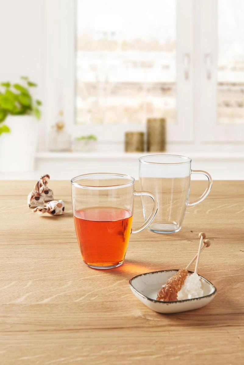 Een zeer mooie en comfortabel glas voor een lekkere kop thee. Door het grote oor goed vast te pakken. Geschikt voor de vaatwasmachine. Daarnaast is het glas gemaakt van borosilicaatglas waardoor het glas extra sterk is. De set bestaat uit 6 glazen.