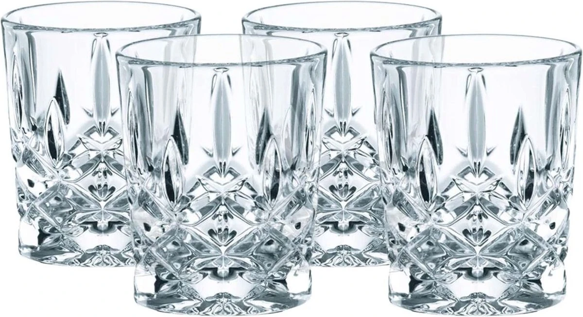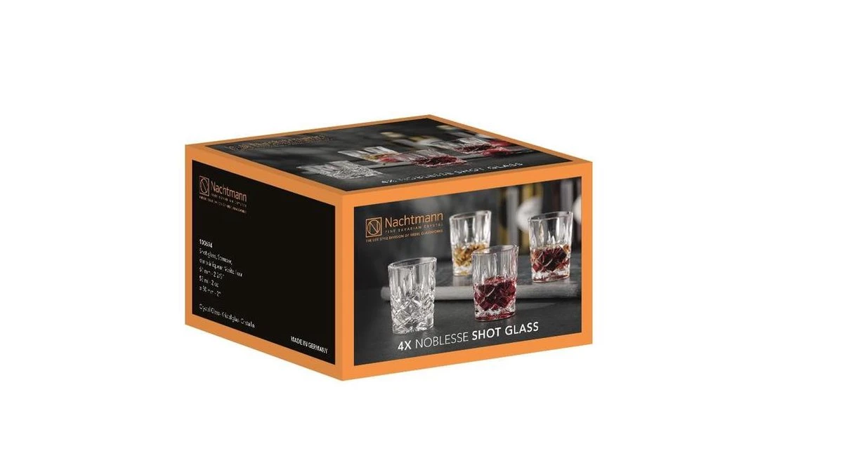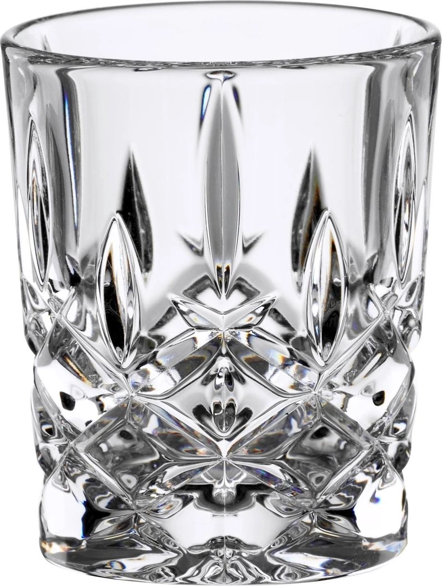 Dit shotglas uit de serie ‘Noblesse’ van Nachtmann is perfect voor shotjes sterke drank. Dit bijzonder luxe, prachtig geslepen glas trekt alle aandacht naar de voet. Hier zie je een helder ruitvormig patroon dat verder naar boven overgaat in langwerpige figuren. Deze set bevat 4 shotglaasjes, ieder met een inhoud van 55 milliliter.