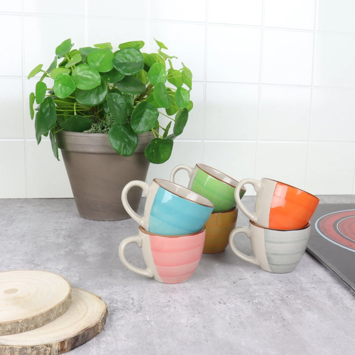Orange85 Espresso Kopjes – Koffie – Set Van 6 – Meerdere Kleuren – 100 Ml – Aardewerk – Glazen – Met Oor – Koffiekopjes
