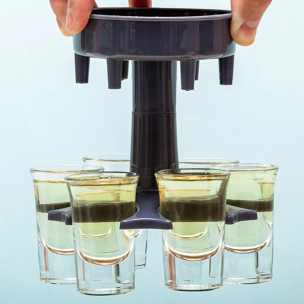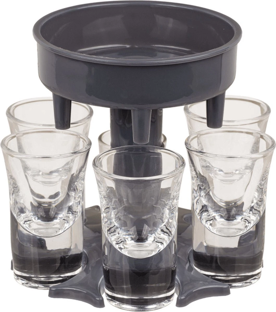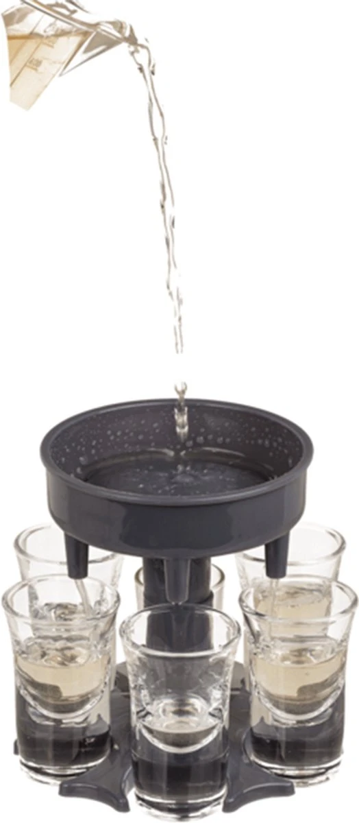 Vul in één handbeweging maarliefst zes shotglazen met deze Shotglas Dispenser.