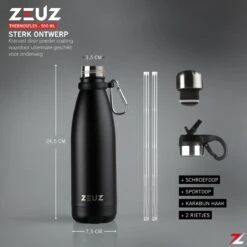 ZEUZ® Premium RVS Thermosfles & Drinkfles – Isoleerfles – Waterfles Met Rietje – BPA Vrij – 500 Ml – Mat Zwart