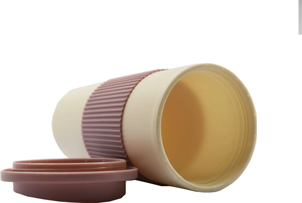 Een mooie drinkbeker voor onderweg. De deksel en de griprand zijn van milieuvriendelijk silicone.In verschillende pastel kleuren verkrijgbaar. Voor zowel koele als hete drankjes.