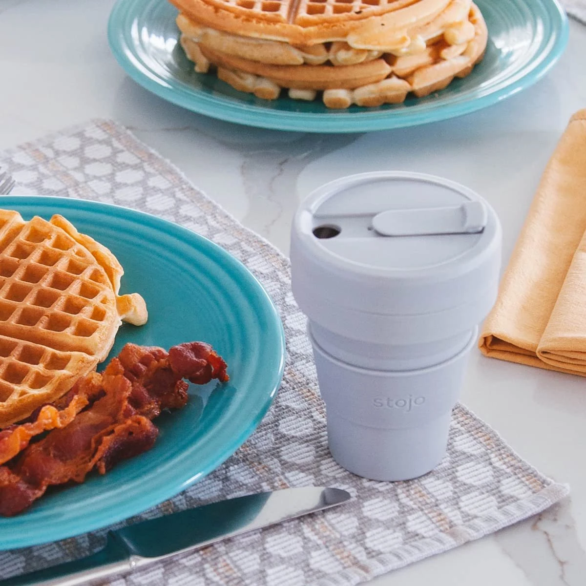 Naast warme dingen zoals koffie en thee, werkt Stojo’s siliconen temperatuurbestendige hoes net zo goed voor koude dingen zoals milkshakes en gazpacho.
