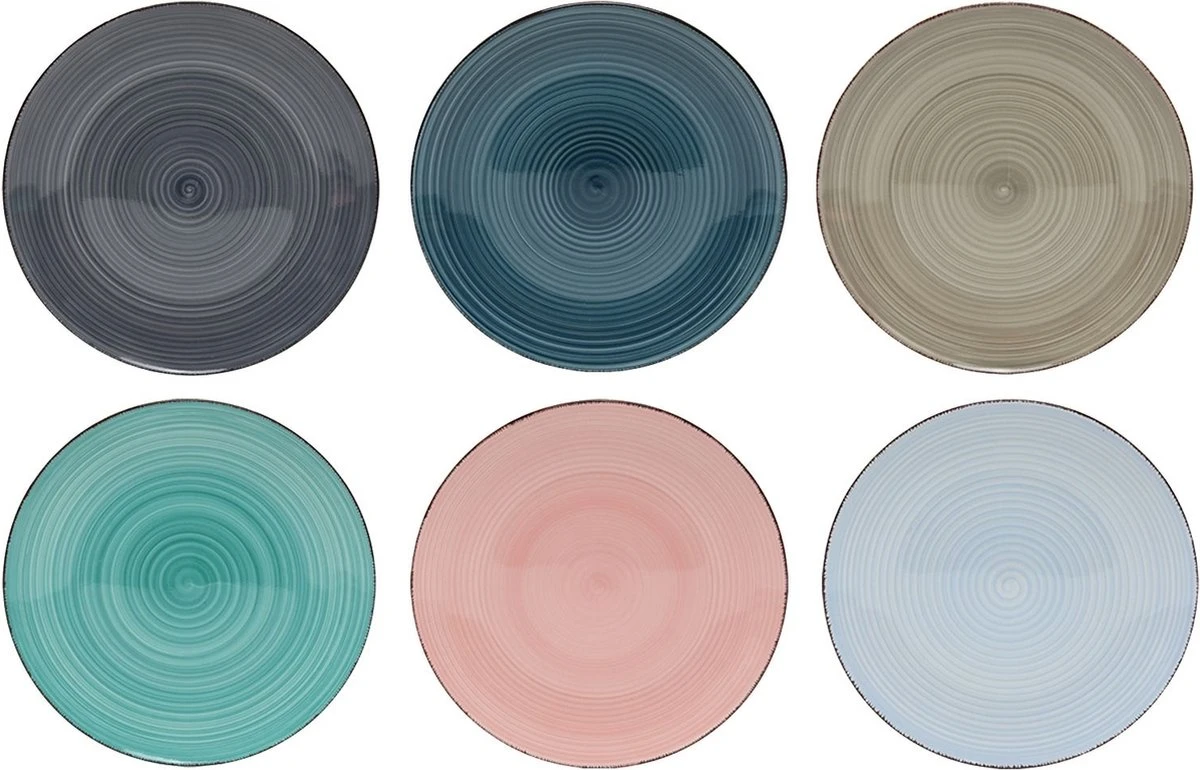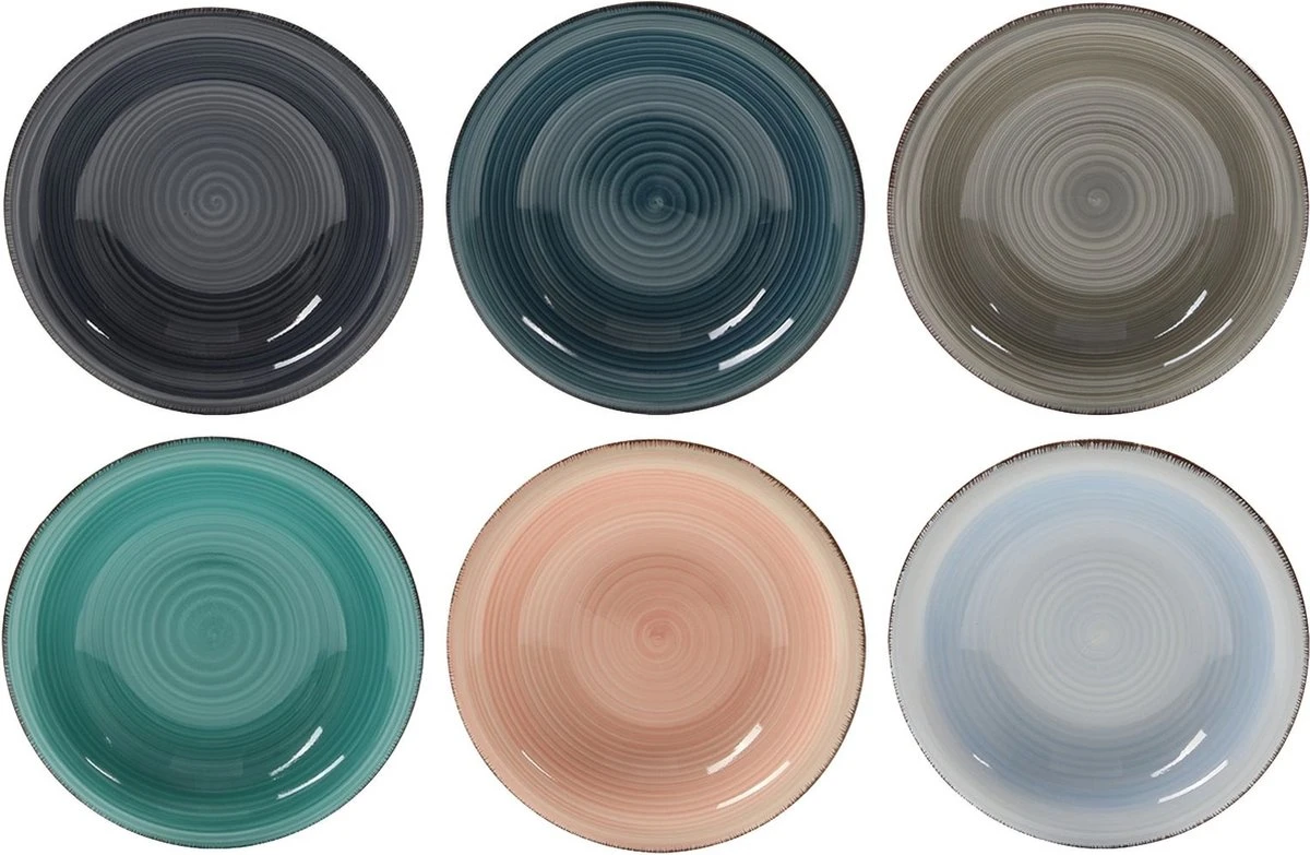 Kleurrijk maar toch rustig servies? Dan is deze serviesset van Studio Tavola perfect voor jou! Dit servies heeft 6 verschillende pastel kleuren. Kleurrijk, maar alsnog straalt het rust uit. Let wel op: deze borden worden gemixt geleverd, er kan dus geen kleur gekozen worden. Combineer de serviesset met de kommen uit de collectie, of combineer het juist met de andere kleuren van het Studio Tavola Servies. Na gebruik mag het servies in de vaatwasser, maar handwas wordt aangeraden. Zo blijft je servies lang mooi. De set bestaat uit: 6 x Studio Tavola Ontbijtborden Barbados Ø 22 cm 6 x Studio Tavola Diepe borden Barbados Ø 21 cm 6 x Studio Tavola Dinerborden Barbados Ø 27 cm