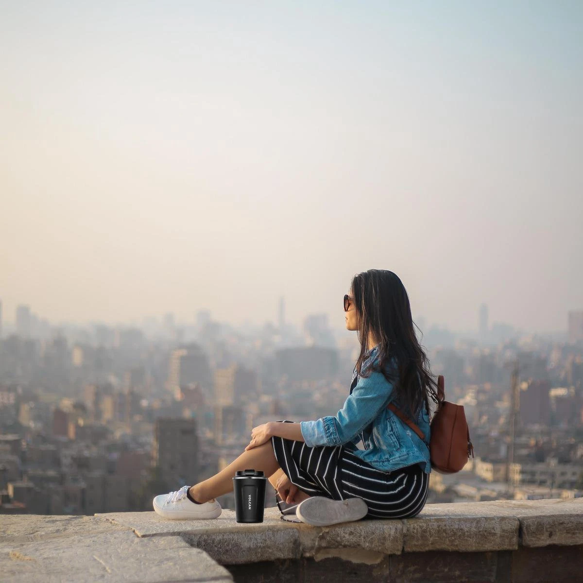 Vul jouw koffiemok thuis of onderweg bij jouw favoriete koffiebar. Met de dubbelwandige isolatie blijft jouw drankje tot wel 4 uur warm. Genoeg voor een lange trein- of autoreis.